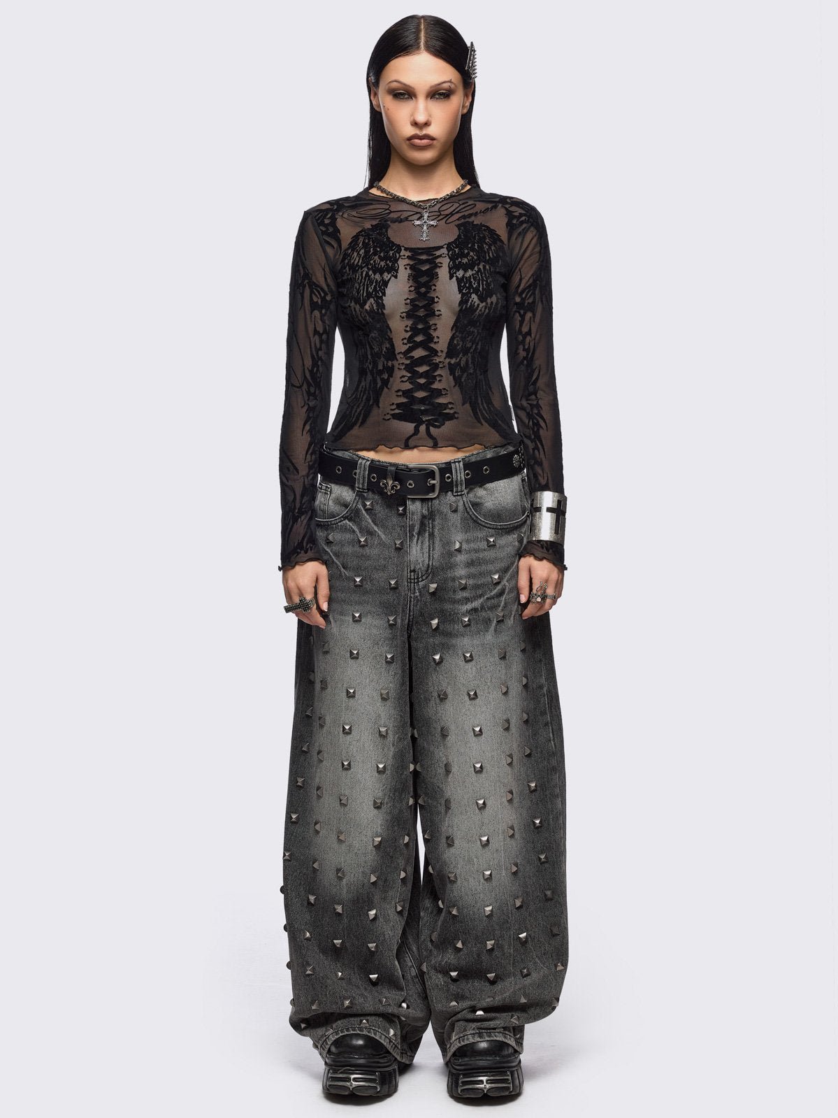 • Black mesh top